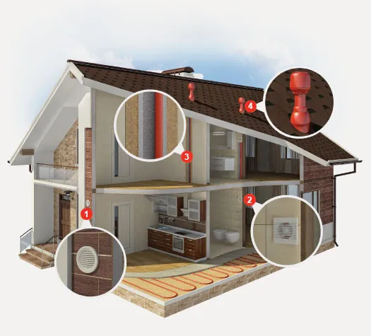 Система вентиляции для загородного дома, а также звукоизоляция перекрытий для шумных зон поставляется вместе с вашим новым домом.